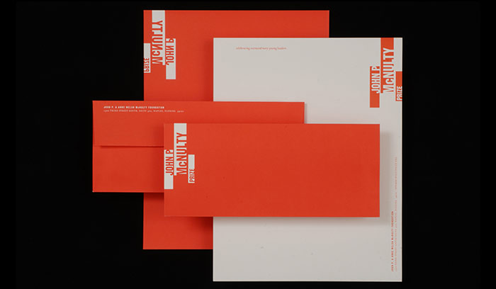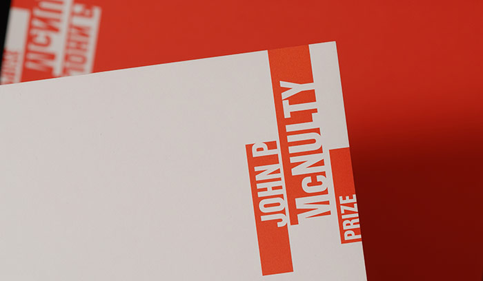 The John P. and Anne Welsh McNulty Foundation sought out Poulin + Morris to develop a spirited visual brand and graphic identity for the Prize, as well as for the Foundation. In addition to a logotype designed to reflect the unique and energetic character of John P. McNulty, the design team was responsible for the Foundation's stationery, promotional print media, and website.