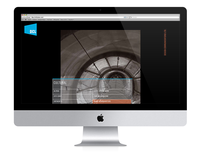 DCL asked Poulin + Morris to build upon the comprehensive branding and graphic identity program they recently created for them, by designing a new website to translate the firm’s visual identity into a user experience highlighting their expertise and workmanship. The site immediately engages the user by presenting two viewing platform options. The recommended full screen version immerses the user into a visual metaphor for the built environment, where a three-dimensional cube swivels to reveal featured projects from the firm’s portfolio.