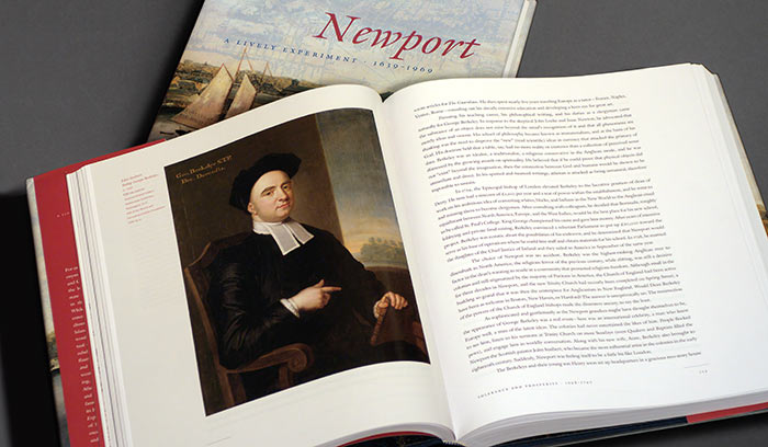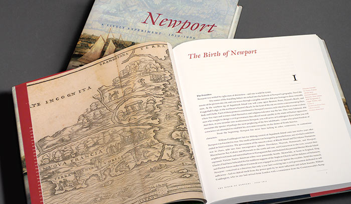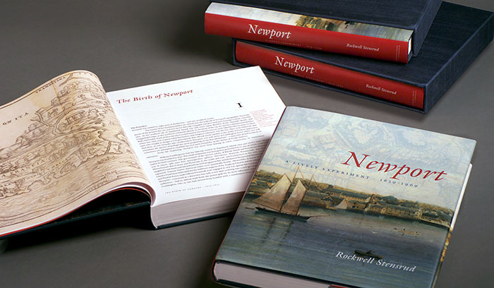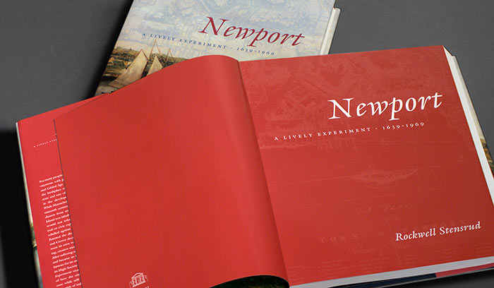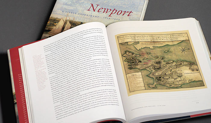The collective goal of the publisher, author, and designer was that the book has a dual purpose as a scholarly publication and a historical novel, with the objective of establishing Newport, Rhode Island as the prototype of the American city. Newport: A Lively Experiment, a 544-page, full-color, hardbound volume, contains over 200 color and duotone images, and accompanying narrative text and sidebars. Additionally, a “Limited Edition,” specially bound and housed in a cloth-covered slipcase with a satin ribbon marker, was designed as a fundraising tool for the Library and is numbered and signed by the author.